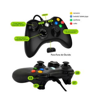 Controle Joystick com Fio Vídeo Game PC USB Preto
