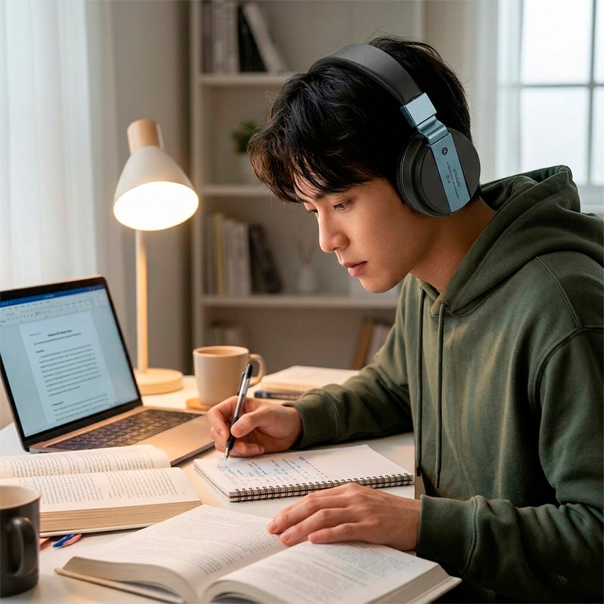 – Almofadas macias com isolamento acústico passivo e haste ajustável para se adaptar perfeitamente a você.