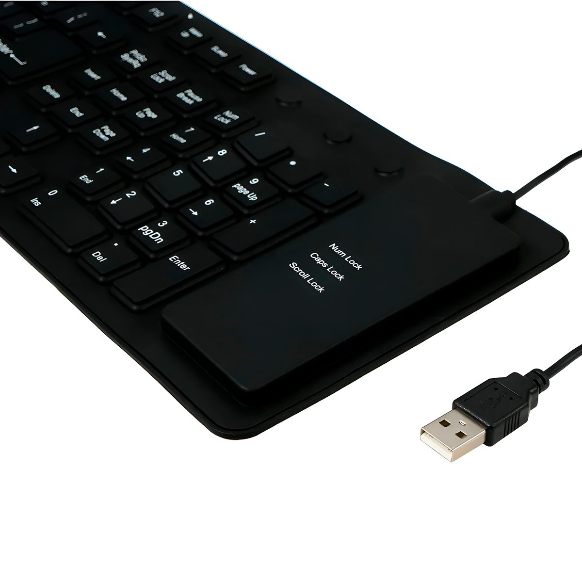 Fabricado em silicone de alta intensidade e elasticidade, este teclado é a solução perfeita para quem trabalha em ambientes industriais, hospitais, escolas ou para quem costuma viajar e precisa economizar espaço na mochila.
