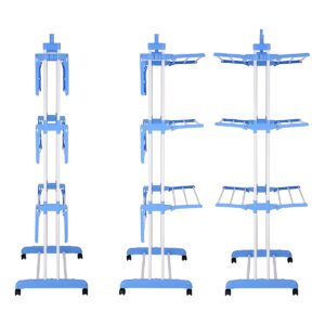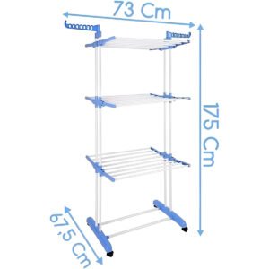-Com seu design vertical e três níveis de prateleiras, este varal oferece uma grande área de secagem em um espaço mínimo.