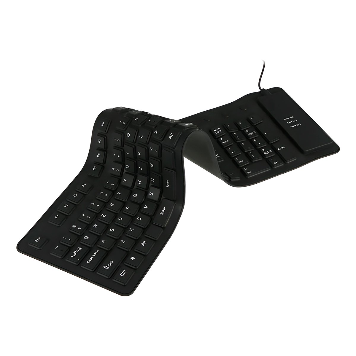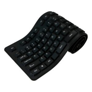 Fabricado em silicone de alta intensidade e elasticidade, este teclado é a solução perfeita para quem trabalha em ambientes industriais, hospitais, escolas ou para quem costuma viajar e precisa economizar espaço na mochila.